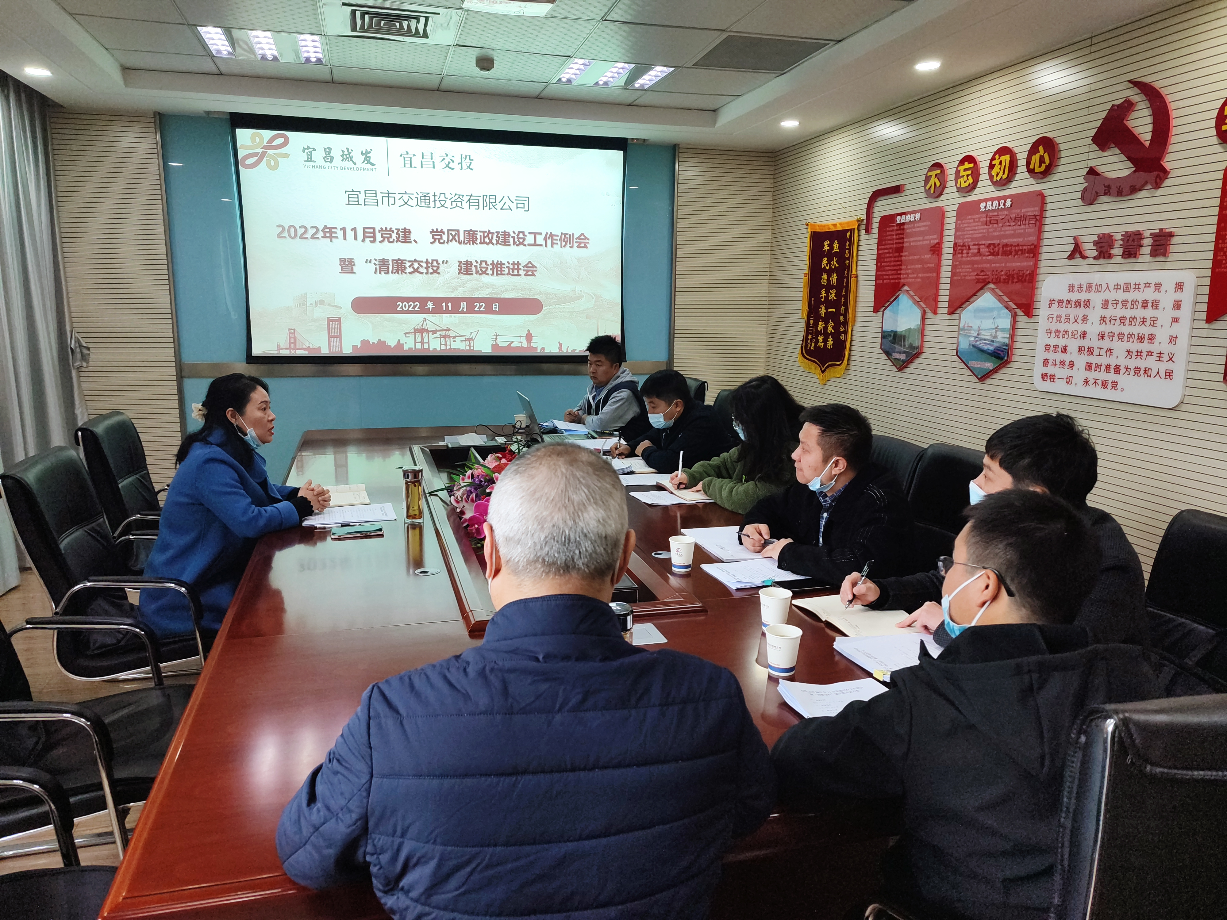 四、11月22日,交投公司組織召開黨建、黨風(fēng)廉政建設(shè)工作例會暨“清廉交投”建設(shè)推進(jìn)會,公司黨委委員、紀(jì)委書記黎毅主持會議,各基層黨支部書記(牽頭負(fù)責(zé)人)、紀(jì)檢委員及黨務(wù)工作者參加會議。會上深入學(xué)習(xí)黨的二十大精神、《中國共產(chǎn)黨紀(jì)律檢查委員會工作條例》、《紀(jì)檢監(jiān)察機(jī)關(guān)派駐機(jī)構(gòu)工作規(guī)則》以及政治生態(tài)分析研判相關(guān)工作方案及要求,并傳達(dá)了城發(fā)集團(tuán)專業(yè)化整合集中授牌儀式及城發(fā)投資集團(tuán)干部任職大會精神,對黨務(wù)紀(jì)檢工作人員進(jìn)行了專題培訓(xùn),重點(diǎn)圍繞近期印發(fā)的三個(gè)制度進(jìn)行學(xué)習(xí),安排部署近階段重點(diǎn)工作。當(dāng)天下午,湖北三峽現(xiàn)代物流有限公司、田家河鐵路項(xiàng)目指揮部分別對會議精神進(jìn)行了傳達(dá),進(jìn)一步凝聚了人心,鼓舞了士氣,壓實(shí)了責(zé)任。