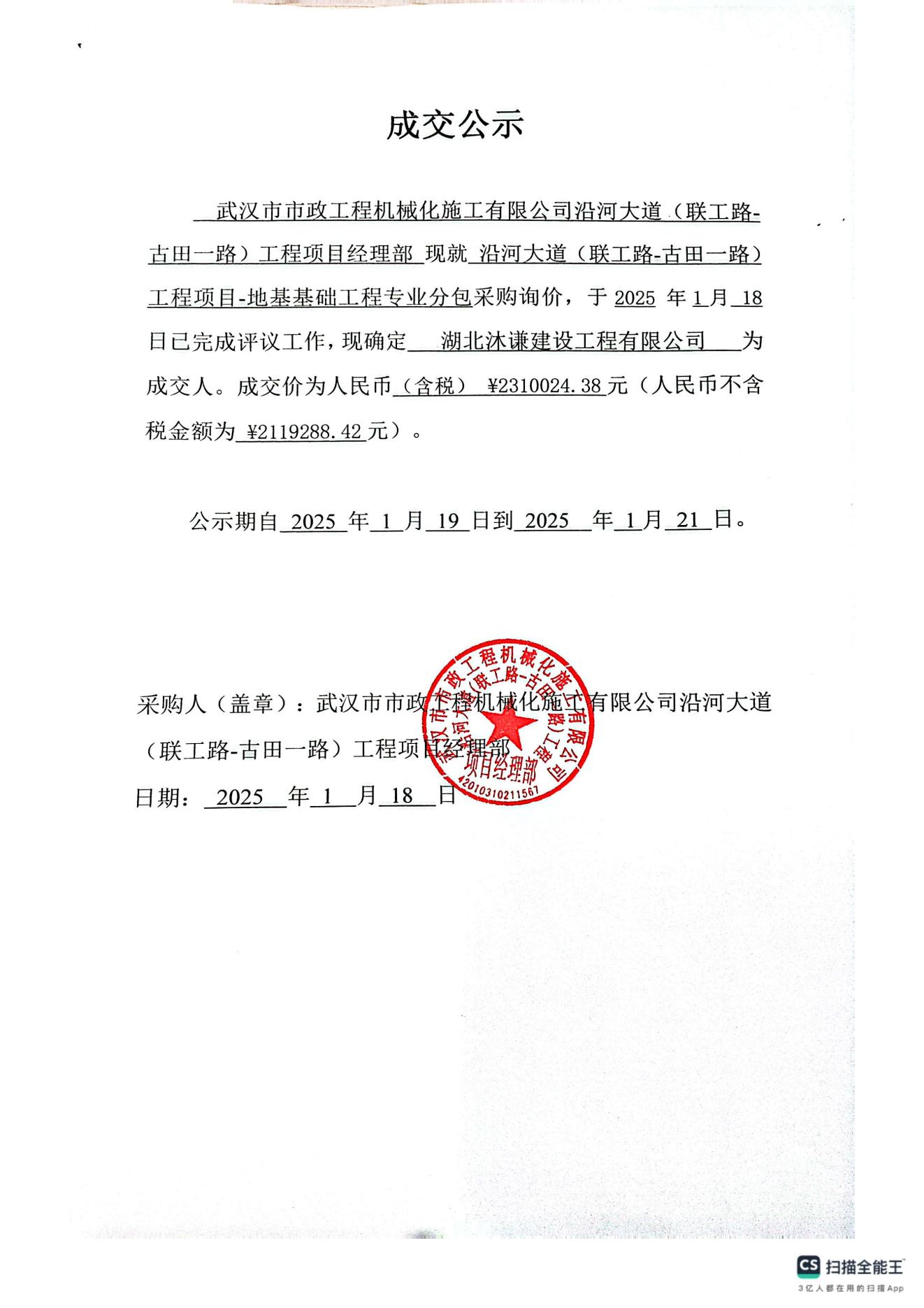 沿河大道(聯(lián)工路-古田一路)工程項(xiàng)目-地基基礎(chǔ)工程專業(yè)分包成交公示