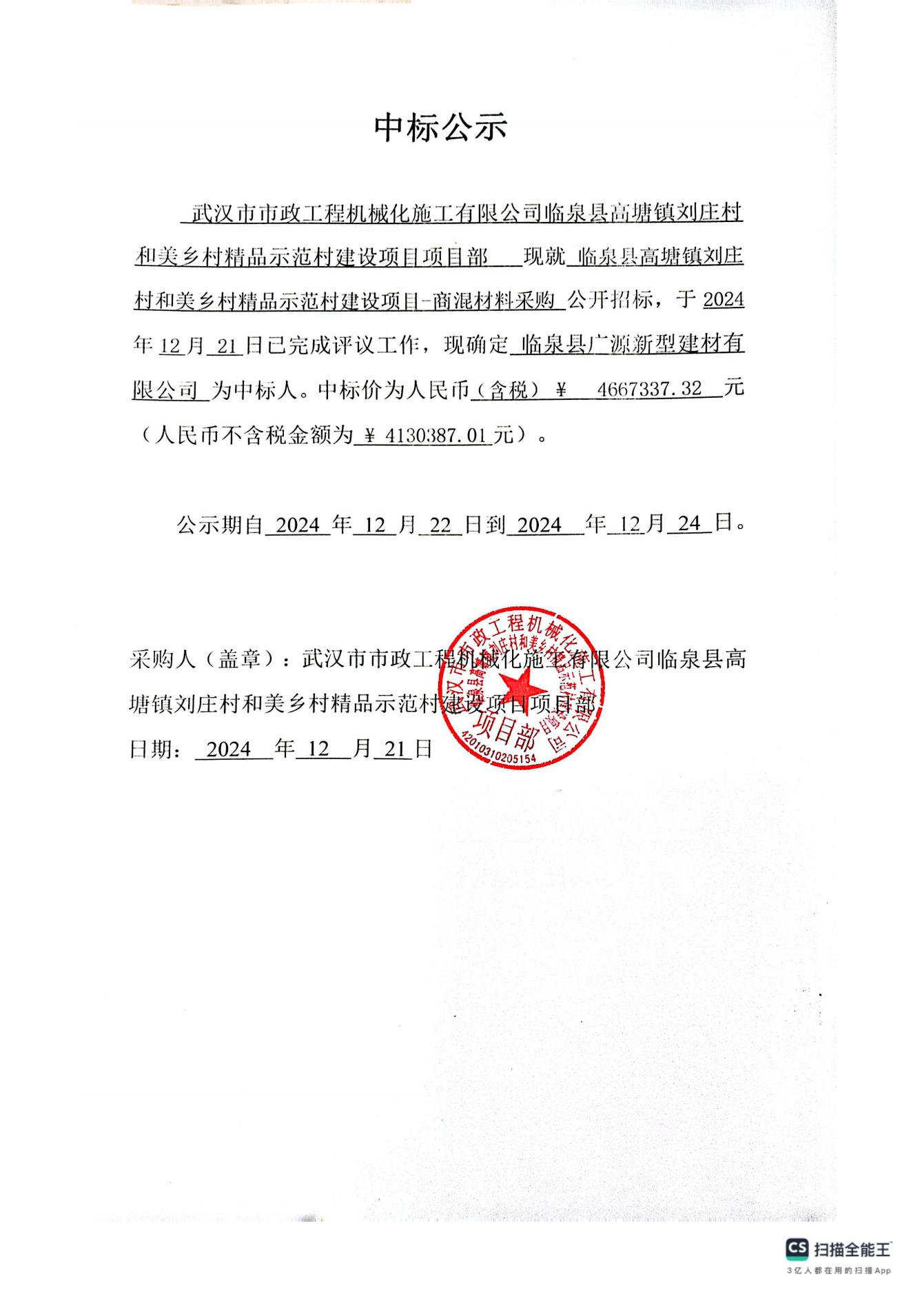 臨泉縣高塘鎮(zhèn)劉莊村和美鄉(xiāng)村精品示范村建設(shè)項目-商混材料采購中標公示