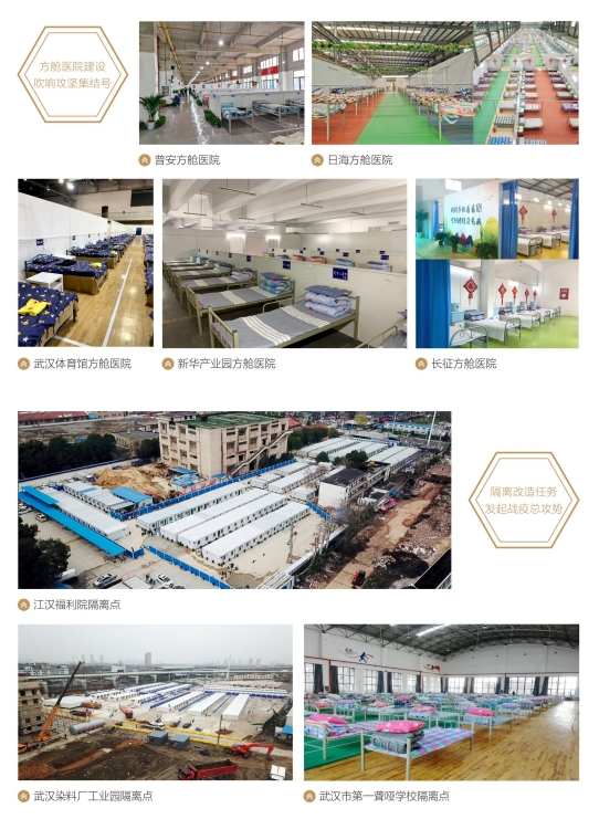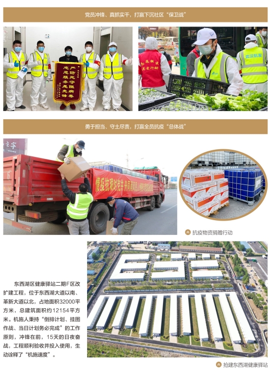 疫情期間 ,機(jī)施公司先后參與了37個抗疫應(yīng)急搶建任務(wù),平均每天建成一座“生命方舟”,累計提供床位16000余張,并先后向社會各界捐贈抗疫捐款及防疫物資263萬元 ,成為集團(tuán)公司參與抗疫任務(wù)最多、 提供床位最多、對外捐贈最多的單位,榮獲集團(tuán)“抗擊疫情立功單位”榮譽(yù)稱號。