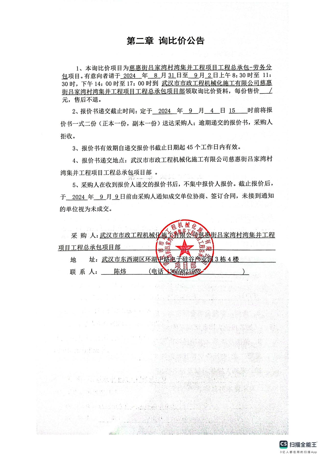 慈惠街呂家灣村灣集并工程項(xiàng)目工程總承包-勞務(wù)分包詢比價(jià)公告