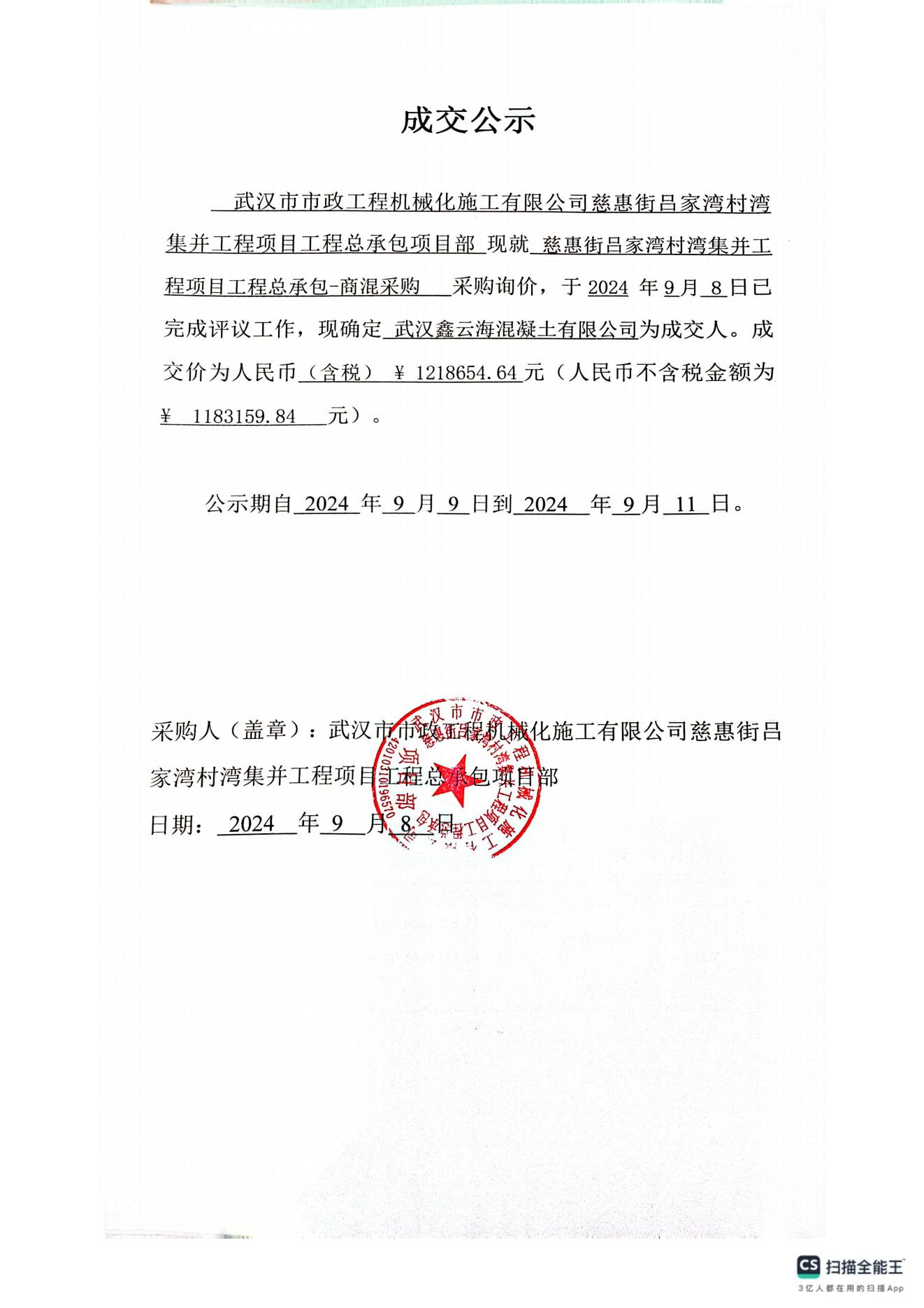 慈惠街呂家灣村灣集并工程項目工程總承包-商混采購詢價公示