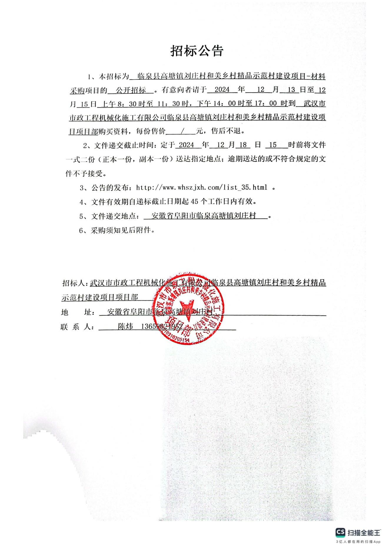 臨泉縣高塘鎮(zhèn)劉莊村和美鄉(xiāng)村精品示范村建設項目-材料采購招標公告