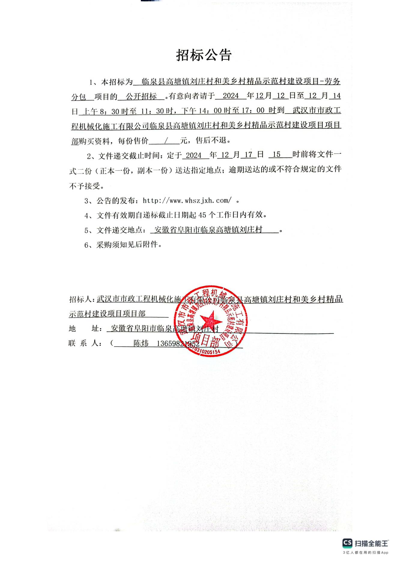 臨泉縣高塘鎮(zhèn)劉莊村和美鄉(xiāng)村精品示范村建設(shè)項(xiàng)目-勞務(wù)分包招標(biāo)公告