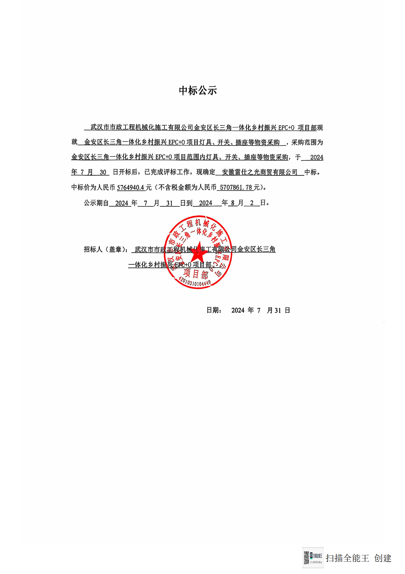 金安區(qū)長(zhǎng)三角一體化鄉(xiāng)村振興EPC+O項(xiàng)目燈具、開(kāi)關(guān)、插座等物資采購(gòu)中標(biāo)公示